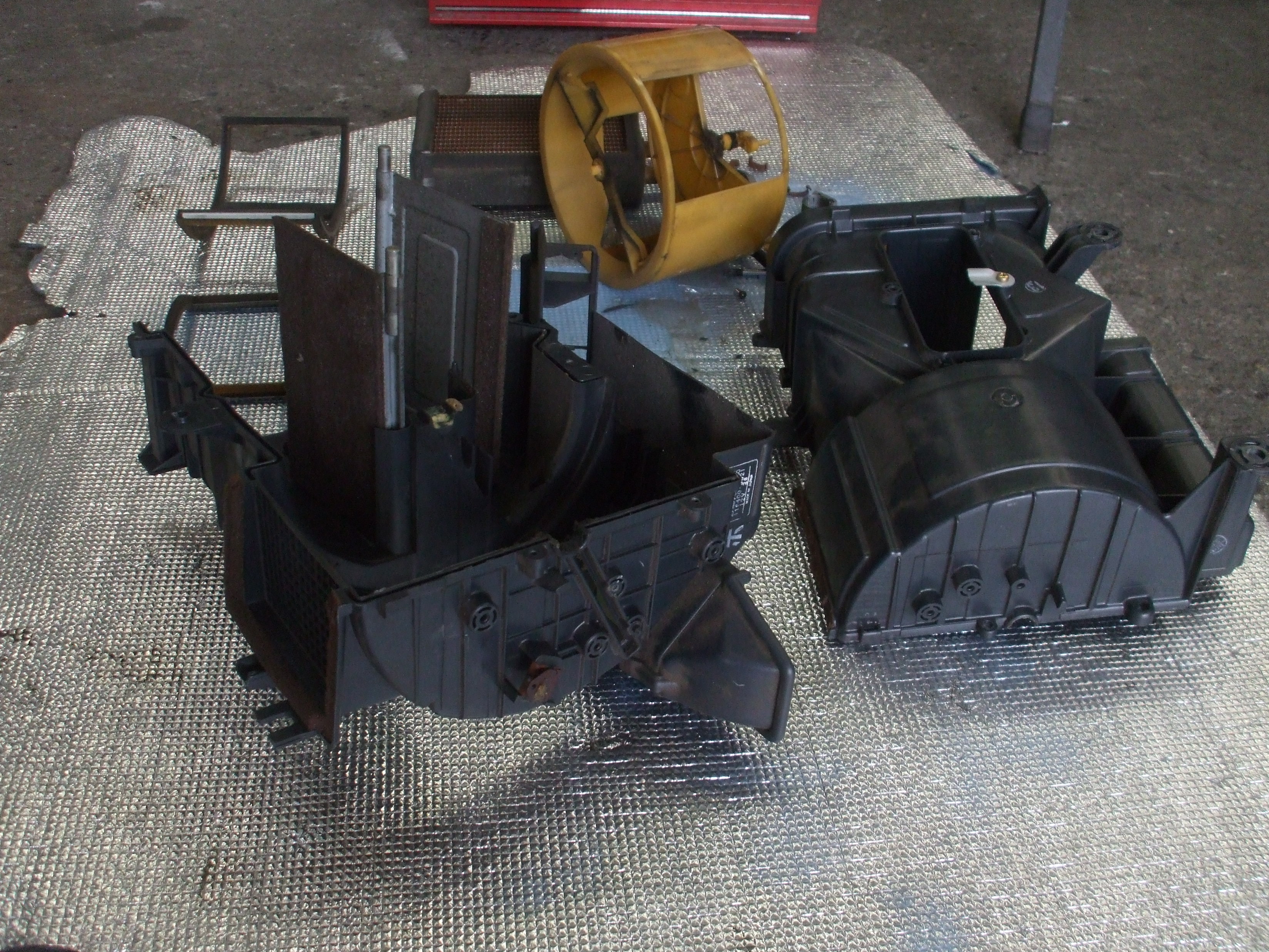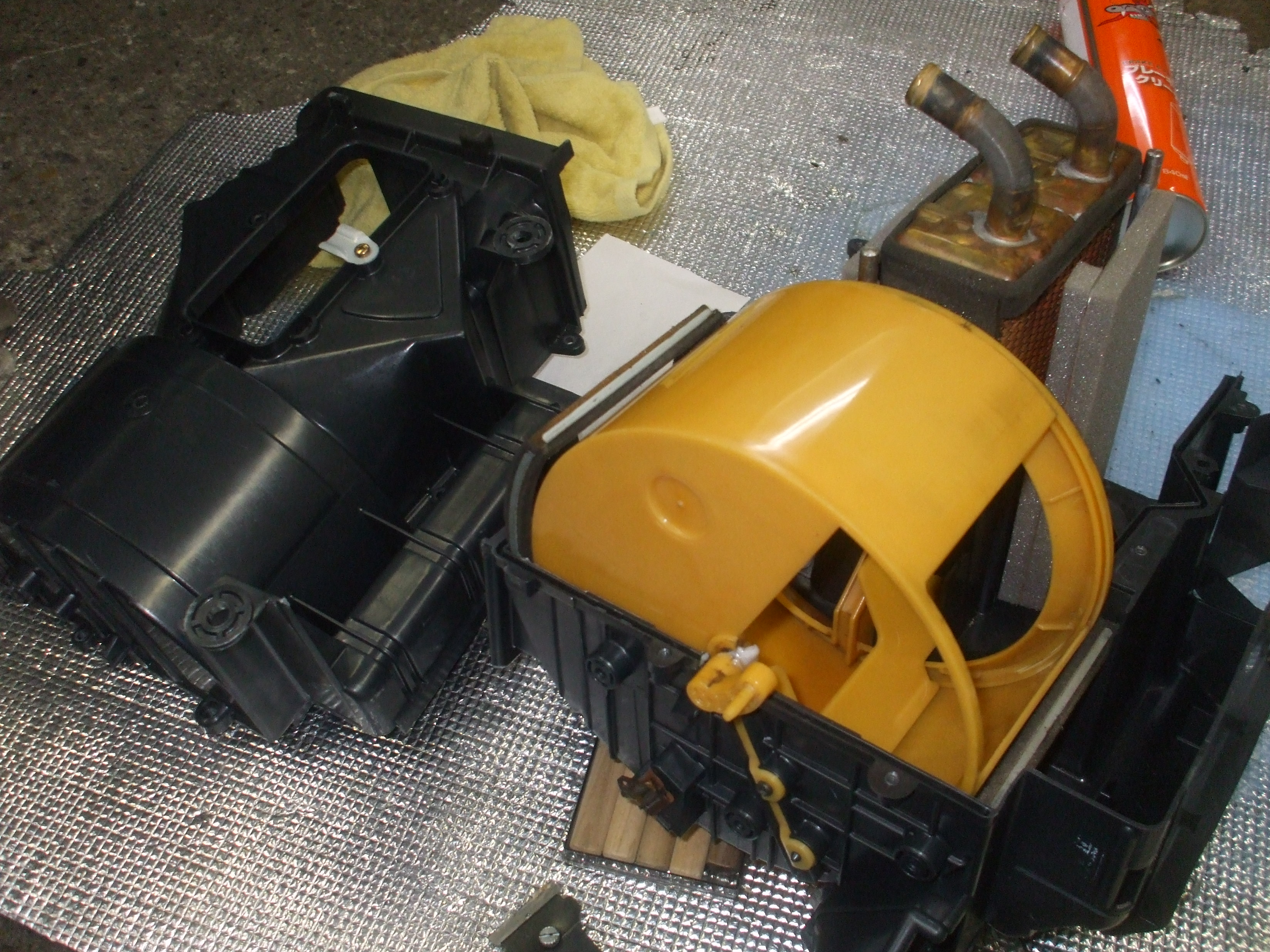 AE85レビンSE デモ車セミレス クラッチのマスターを取り付ける為、邪魔なので スポットカッターにて取り外しです。 ヒーターケースも分解して洗浄です。 汚れを落として綺麗になりました。 組み付けます。