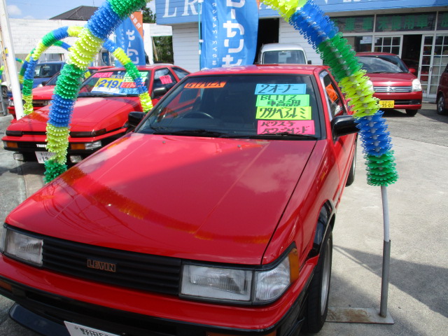 2019年5月4日 (土) | スタッフブログ 程度良し!61年式レビン3ドアGT-APEX入荷 2オーナーの程度の良い3ドアレビン入荷しました。 もともと当社のオーナー様でワンオーナー車をご購入 頂いたお客様です。 BLITZの車高調、ワタナベAW、FGKマフラー、テックアート製ダッシュカバー、 クールベールガラス、ドライブレコーダー等、装備も充実しております。 近日中に画像アップ致します。
