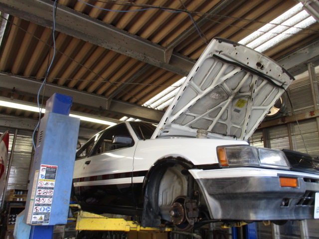 2019年12月16日 (月) | スタッフブログ 県内K様 お預かりAE86レビン 車検でお預かりです。 初期点検でいくつか見つかりました。 ラックブーツが片側破れてます。 だいたい左側ですね。 EXマニの熱も加わり劣化が早いです。 サイドブレーキワイヤーも交換ですね。 それからエアコンコンプレッサーからオイル漏れがありますので オーナー様と相談です。