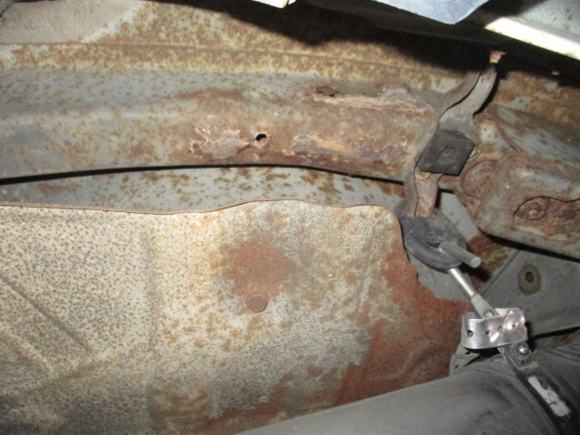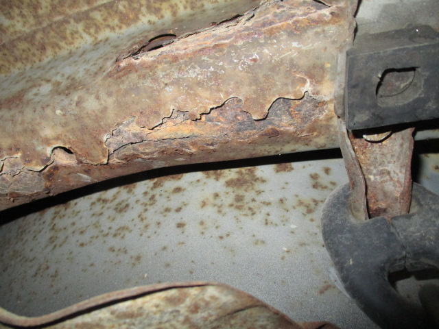 マフラーを吊るしているリアのサイドメンバーも腐食が進んでおり