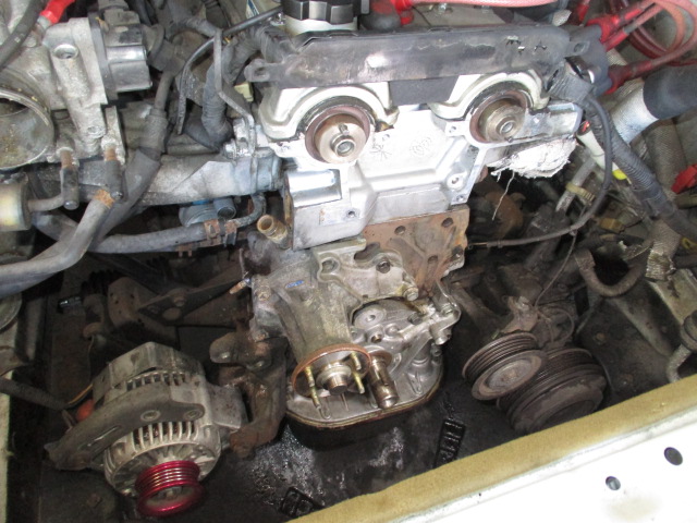 最後の作業でTベルト、テンショナー、スプリング、ウォーターポンプ