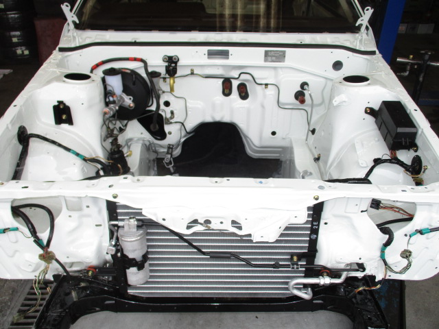 エンジンルーム内、室内のパーツ取り付けを進めております。