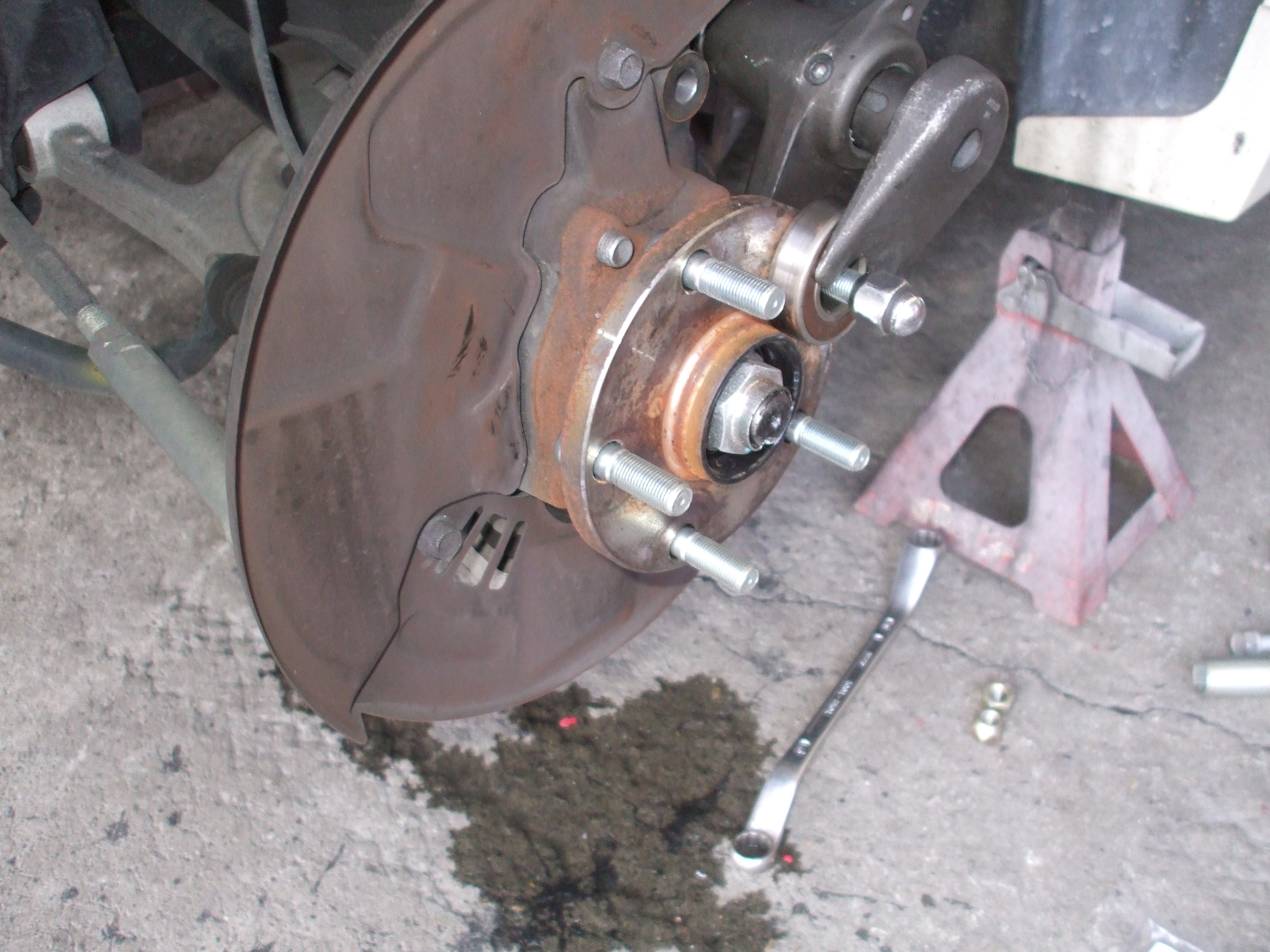 2016年4月8日 (金) | スタッフブログ 東京都R様 インプSTI部品交換 友人のインプレッサSTIのハブボルトの交換です。 1本、ナットが取れなくなったとの事でついでにフロント全ての ハブボルト交換です。 ナットが外れなかったハブボルトです。 きちんと噛んでない状態で恐らくインパクトで締めつけたと思われます。 タイロッドエンドプーラーを使用してハブボルトを打ち込んでいきます。 これで安心です!
