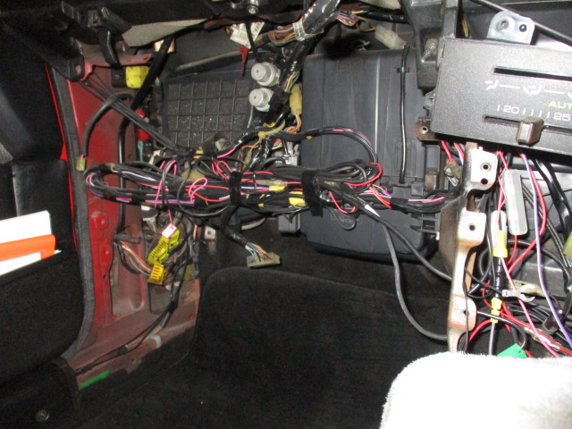 2021年12月14日 (火) | スタッフブログ 東京都H様 お預かりAE86レビン メーター交換、ヒーターコア、エバポレーター交換等も ありますので室内を取り外していきます。 ワイパースイッチの部分が粘土みたいなもので固定されてる。 外さないとわかりませんね! 配線がかなりありますので慎重に取り外さないといけません。 エンジンも降ろしました。 エンジンルームはこの後、洗浄します。 今回はエアコン関係もリフレッシュ致しますが、コンデンサーから漏ってましたね。