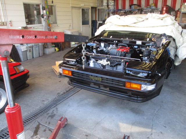 2021年12月21日 (火) | スタッフブログ, レストア情報 AE86トレノ ブラックリミテッドレプリカ㉗ エンジン搭載致しました。 これからエンジンルーム内の配線関係の作業になります。 もう少しペース上げていきます!