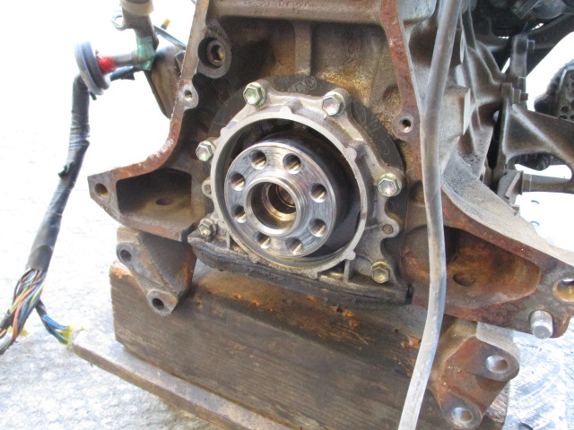 降ろしたエンジンはまずはクラッチ、フライホイールを取り外して