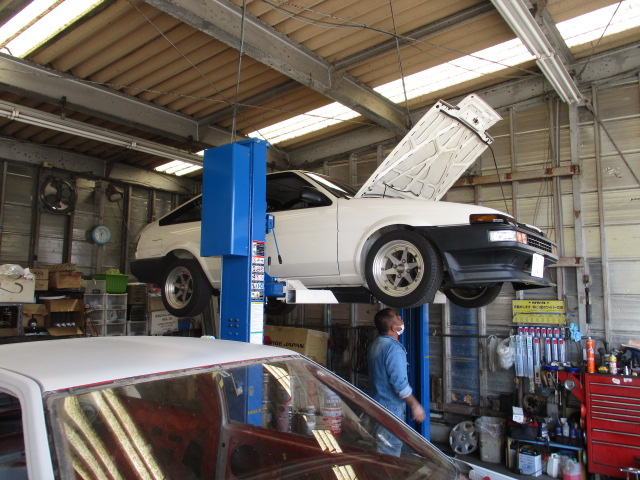 2022年4月12日 (火) | スタッフブログ 栃木県O様 ご成約AE86レビン 先日ご成約頂きましたお車、ご納車整備前点検です。 レビン改トレノ仕様ですね。 点検後、部品出しして本格的に整備に入ります。