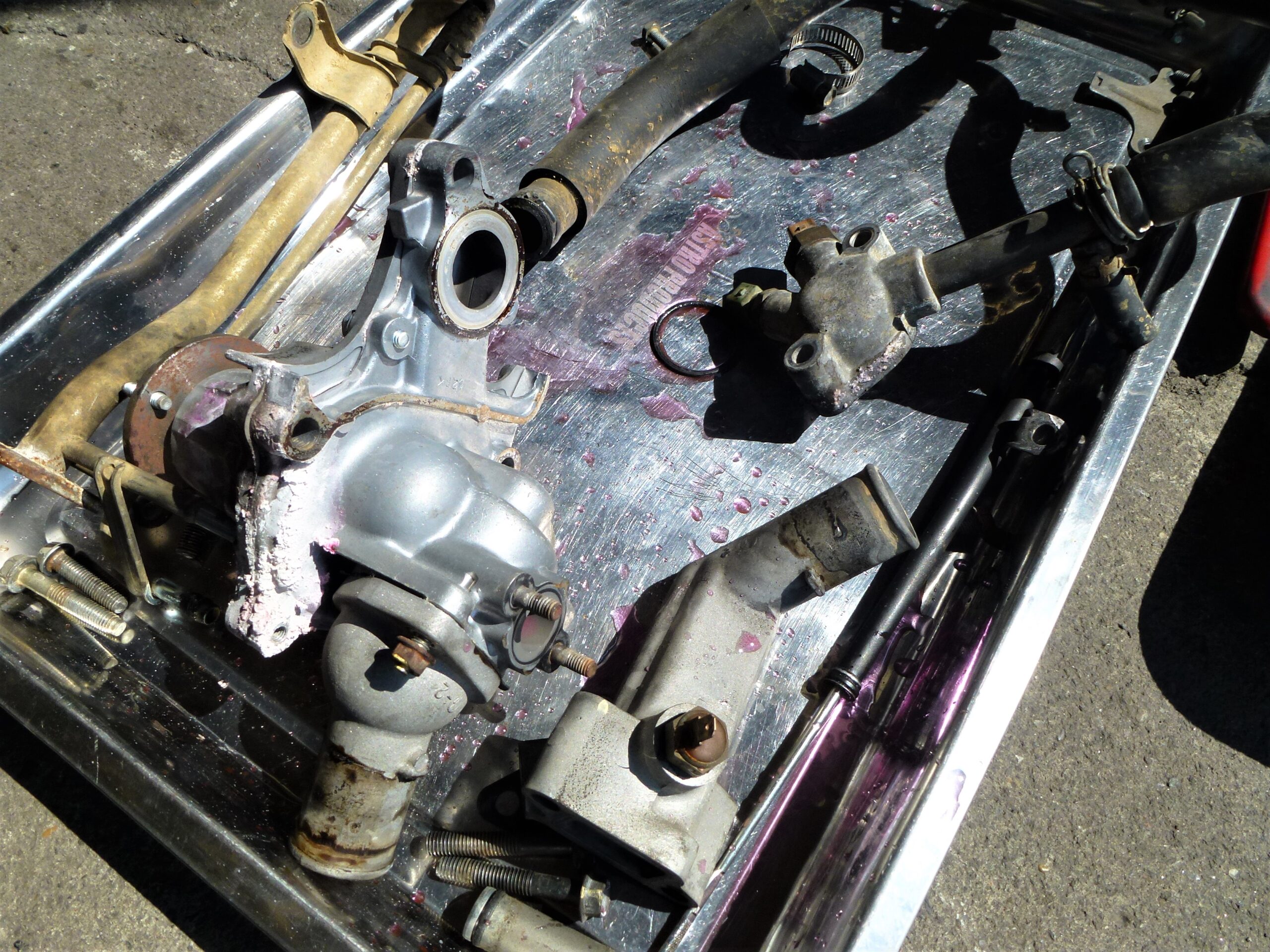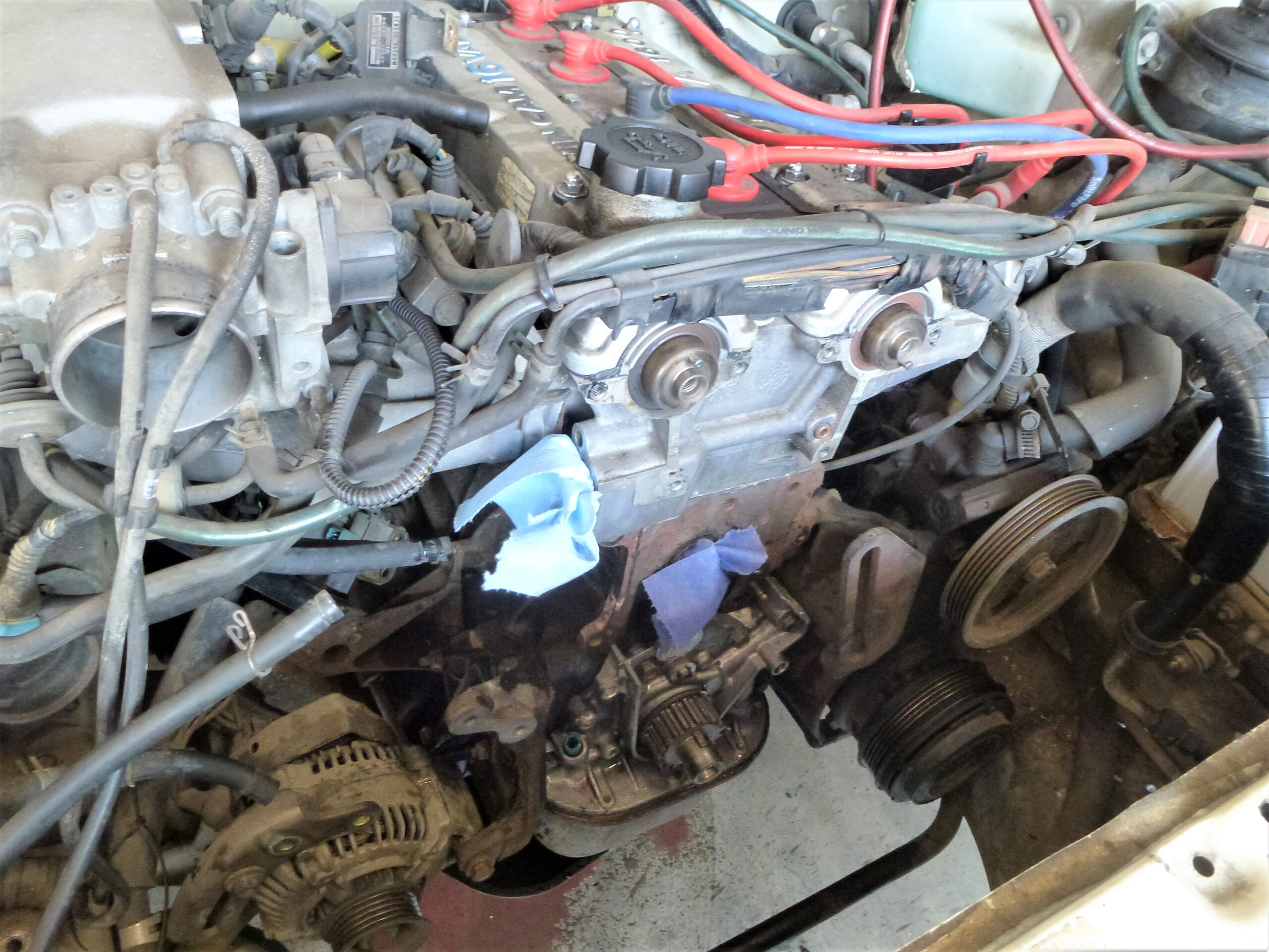 ウォータポンプ&リアヘッドプレートから冷却水漏れが有りましたので修理しました。