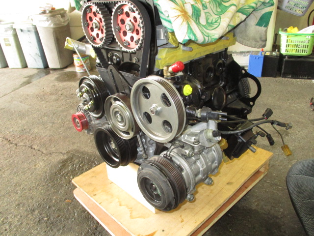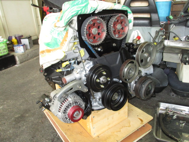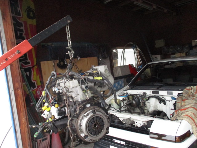 2022年6月18日 (土) | スタッフブログ 栃木県F様 お預かりAE86トレノ 現在のエンジンの取り外し 移植する部品を新たに載せるエンジンに取り付けていきます。 あとはハーネスとインマニを取り付けて載せる準備は完了です。