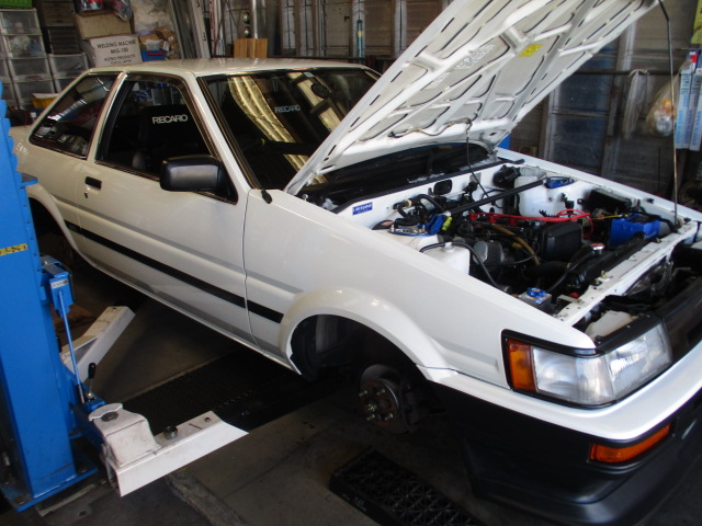 2022年7月9日 (土) | スタッフブログ 県内O様 お預かりAE85SEレビン 車検でのお預かりです。 EXマニ&マフラーを当社オリジナルに変更やブレーキホース、オイルクラーの 取り回し変更などありますので一つずつ進めてまいります。