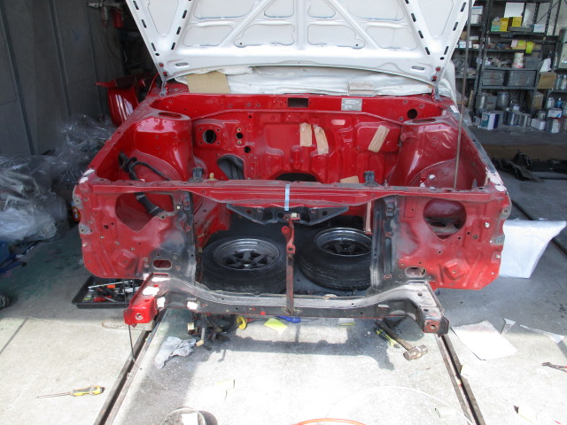 2022年9月5日 (月) | スタッフブログ, レストア情報 AE86レビン復活プロジェクト フロントはフレームも付いて寸法も合わせ形になってきました! 私は本日午後から鈑金屋さんに出張でメンバーなどを新しく組付けに行ってました! もともと付いていたメンバーなどは再使用しません。 まだまだ完成まではかかりますが、形になると嬉しいですね! だだでさえ車が減っていく一方なので復活が待ち遠しいです!