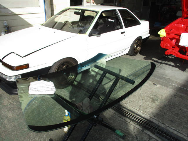 現在のフロントガラスが飛び石キズが多いのとアッパーモールが