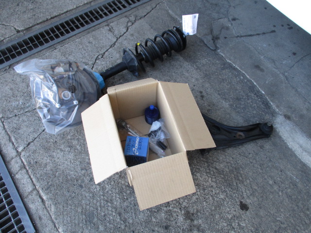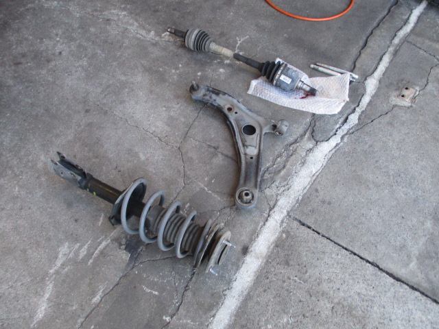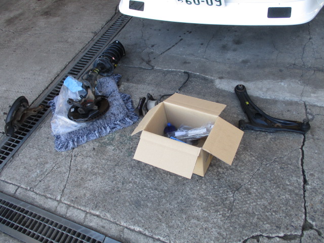 交換していきます。ストラット、ナックルハブ、ロアアームは中古を使用して