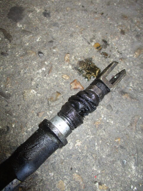 サイドブレーキワイヤーにもオイルが付着してますね。