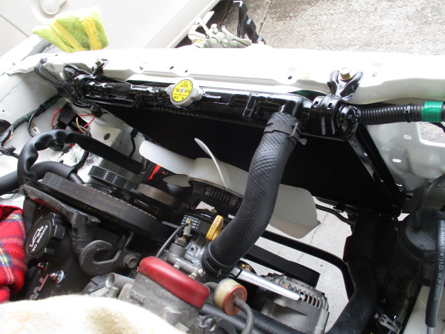 2023年7月14日 (金) | スタッフブログ, レストア情報 栃木県S様 ご成約AE86トレノセミレス ラジエーターの取付 今回は銅2層タイプの新品を取付 ホースも新品です。 アクセルワイヤーも新品を取付 室内も着々と・・・ ダッシュ、アンダーパッドも取付終了 それからドアヒンジは運転席側にガタがありましたので、せっかくなので 左右とも新品に交換しました。