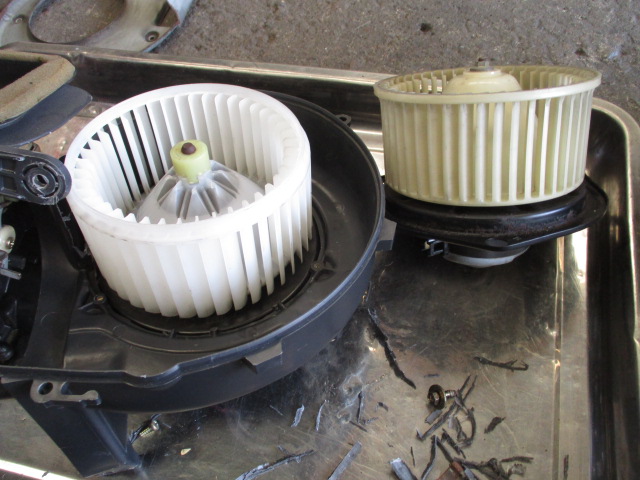 2023年7月19日 (水) | スタッフブログ 県内O様 お預かりAE86レビン ブロアモーターの交換。 ユーザー様のご依頼で規格外のブロアモーターの組付け ブロアファンは洗浄しました。 一回り大きいサイズなので加工して取り付けます。 右側が純正で左が今回取付ける規格外品です。 せっかくなのでレジスターも新品に交換 フィルターも汚れがありましたので新品に交換しました。 仮合わせを何度もしなくてはいけなかった為、組付けまで結構時間かかりました。 あとは配線を作れば完成です。