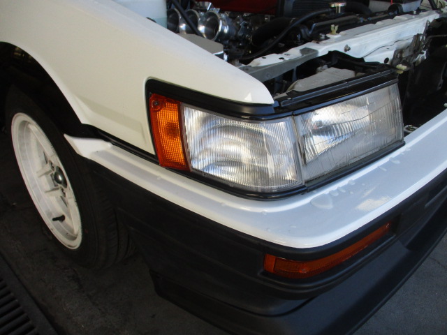 2024年2月7日 (水) | スタッフブログ 東京都I様 ご成約AE86トレノ2ドア リアガラスのサイドモールは塗装して取付 あらかじめモールクリップは交換しております。 そして左右のクリアランスランプ交換 左右新品を取り付けます。 後はボディーの磨きかけて 最後にフロントグリルの新品を取り付けて終了になります。 試運転もしました。 LINKにしてアイドリングの安定、元々IN、EXとも264のカムが 入っていてアネックスさんで完璧にセッティングしてもらいましたので 数値よりトルクも感じ乗りやすくなりました。