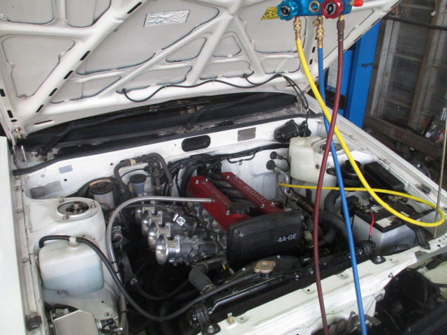 2024年6月24日 (月) | スタッフブログ 東京都I様 お預かりAE86トレノ エアコンコンプレッサー交換とフェンダーツメ折でのお預かり 先にコンプレッサー交換 取り外したコンプレッサーは裏側のロックセンサー部分が飛び出てしまってました。 デンソーリビルトに交換して真空引き後、ガスチャージしてエアコンは終了 次はフェンダーのツメ折に移ります。