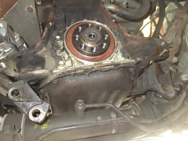 リアクランクシールから漏れている跡がありますのでオイルシール交換します。