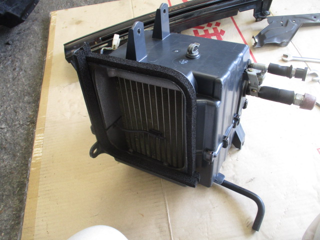 2024年9月9日 (月) | スタッフブログ 神奈川県S様 お預かりAE86レビン エアコン関係の取り付けの続き 古いコンデンサーを取り外します。 組み上げていた新品のコンデンサーにレシーバータンクをあらかじめ取り付けて 次は室内のケースを取り外し ケースは洗浄して組付けます。 リビルトのコンプレッサーと新品の低高圧コンプレッサーホースを 取り付けて 真空引き後、ガス注入して 冷え、コンデンサーファンの作動も確認して終了です。