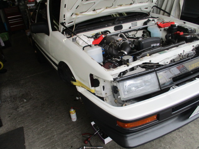 2025年3月31日 (月) | スタッフブログ 茨城県O様 お預かりAE86レビン ドアヒンジ交換 上下ともガタが結構ありましたね。 取付面は古いシール落として磨いて新しいヒンジを取り付けます。 位置を正確に出して本締めしていきます。 ヒンジ周りにシール打ってフェンダー等戻していきます。 このシールを塗る作業があるのでフェンダー外しは必須ですね。 それからフェンダー下側のボルトはサビがひどく折れてしまったので ドリルでもんでタップたてて取り付けました。 LINKにして生まれ変わった車、楽しんで下さいませ。 作業は全て終了致しました。