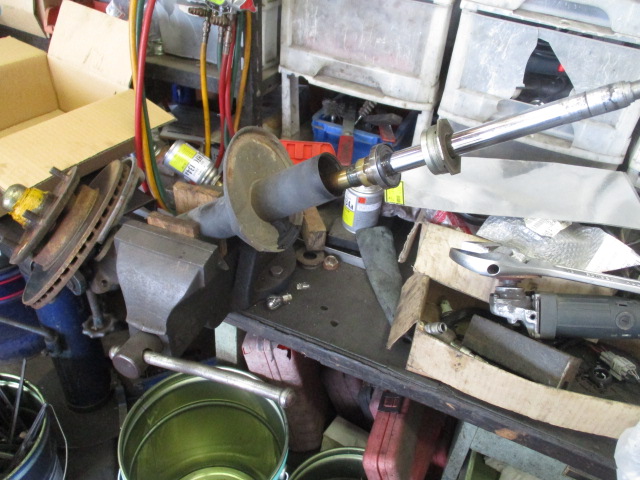一度、ブレーキホース、キャリパー外して取り外します。