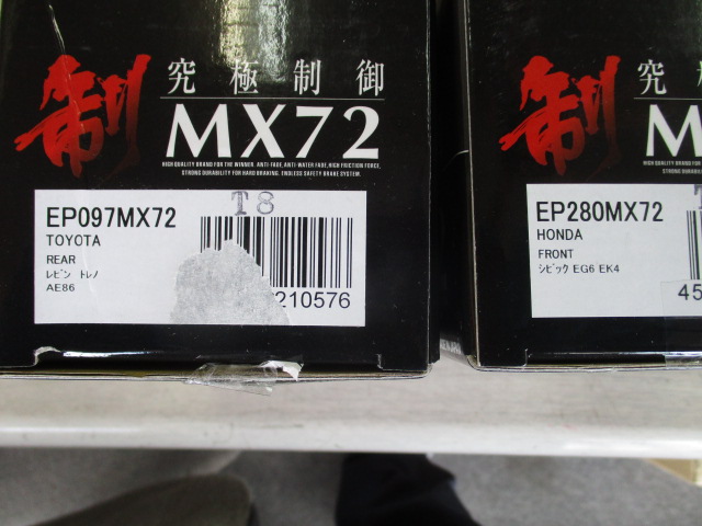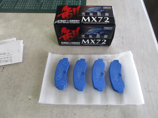 2025年4月12日 (土) | スタッフブログ 東京都Ⅰ様 ご成約AE86トレノ ブレーキパッドがようやく入荷しましたので取り付けます。 今回取り付けるのはENDLESSのMX72 フロントがEG系、リアはAE86用です。 次は室内に移ります。 続く。