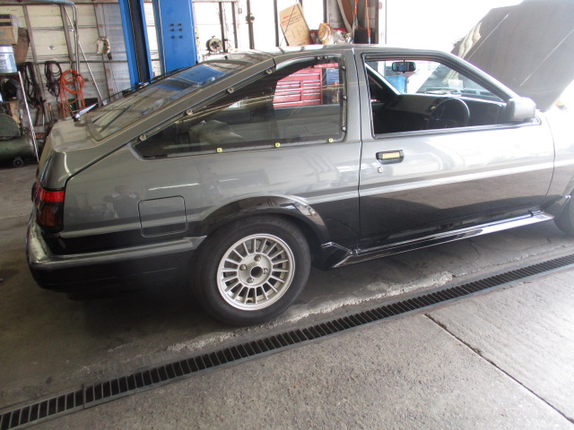 2025年5月5日 (月) | スタッフブログ 東京都Ⅰ様 ご成約AE86トレノ ようやくエンジン始動 元々あるようなツートンカラー ドアモールが付くと更に良い感じになりそうな雰囲気です。 予備検査までもう少しです。