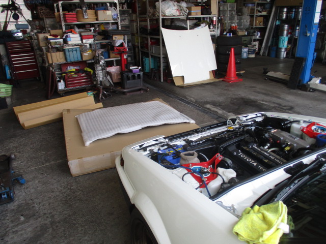 2025年8月25日 (月) | スタッフブログ 千葉県K様 AE86トレノ作業 ボンネット交換 今回取り付けるのは高勢スタウトさんのカーボンボンネット 何度か位置合わせして終了。 後日、純正色に塗装します。 高勢さんのストライカーはしっかりしているので安心ですね。