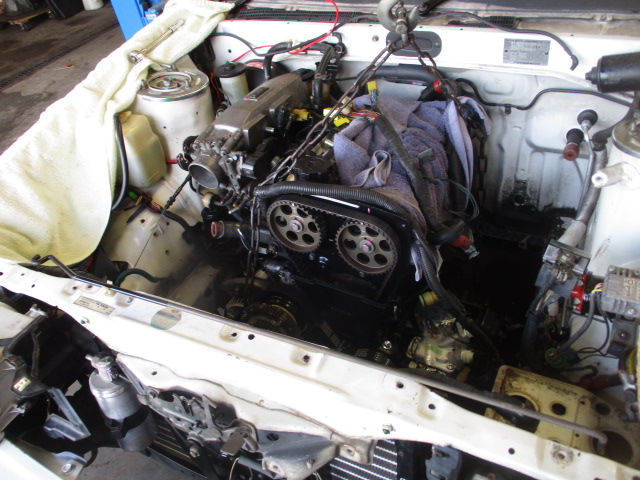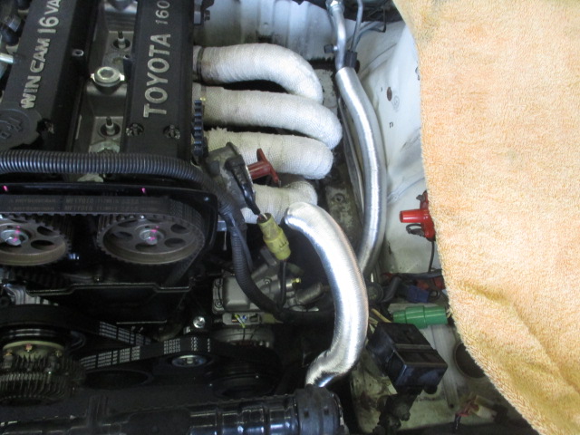 EXマニ取り付けてコンプレッサーホースも取り付け