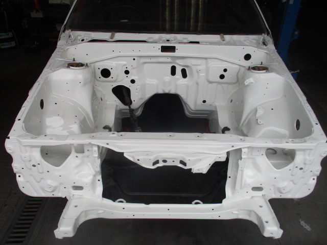 2026年1月20日 (火) | スタッフブログ 東京都O様 お預かりAE86レビン とりあえずフロント廻りの修理が完了し一旦、当社でエンジン廻りの 組付け作業に移ります。 破損が酷く取り外したサイドフレーム 元々は赤色でしたが、外装に合わせてせっかくなので 同色の白にエンジンルームも塗装。 やはり色は外装に合ってた方が良いですからね。 続く。