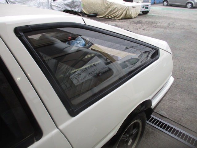 2026年2月27日 (金) | スタッフブログ 東京都O様 お預かりAE86レビン ヘッドライト新品取付、前廻り組付け作業 内装も組み上げていきます。 左リアサイドガラスモールクリップ、ウエザーも交換しました。 続く。
