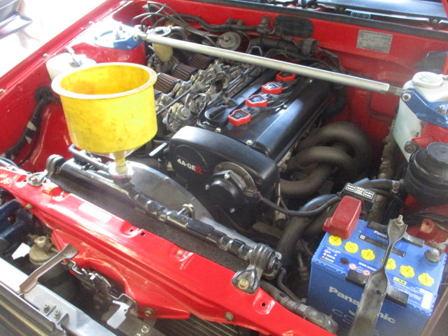 2026年3月10日 (火) | スタッフブログ 千葉県Ⅰ様 お預かりAE86レビン メーターのセンサー取り付けの為、今までの水温ブロックの変更 メーター取付と作動確認 クーラントを抜いたのでエアー抜きして終了 続く。