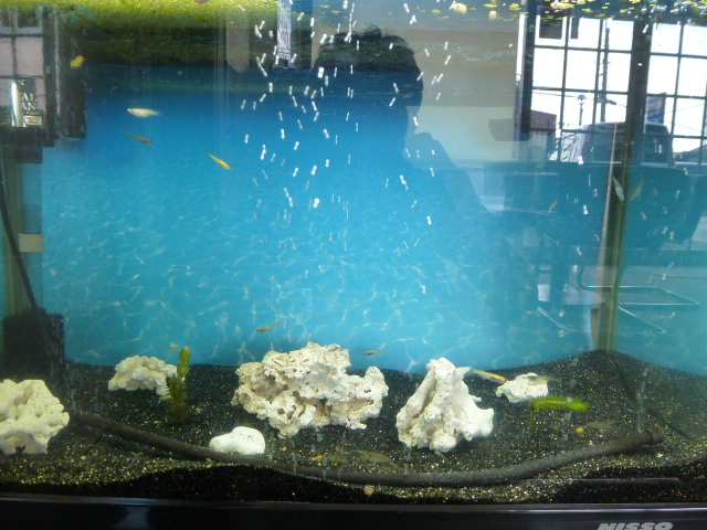 休みの間コケだらけになっていたので、とってもはっきりメダカが見えるようになりました♪