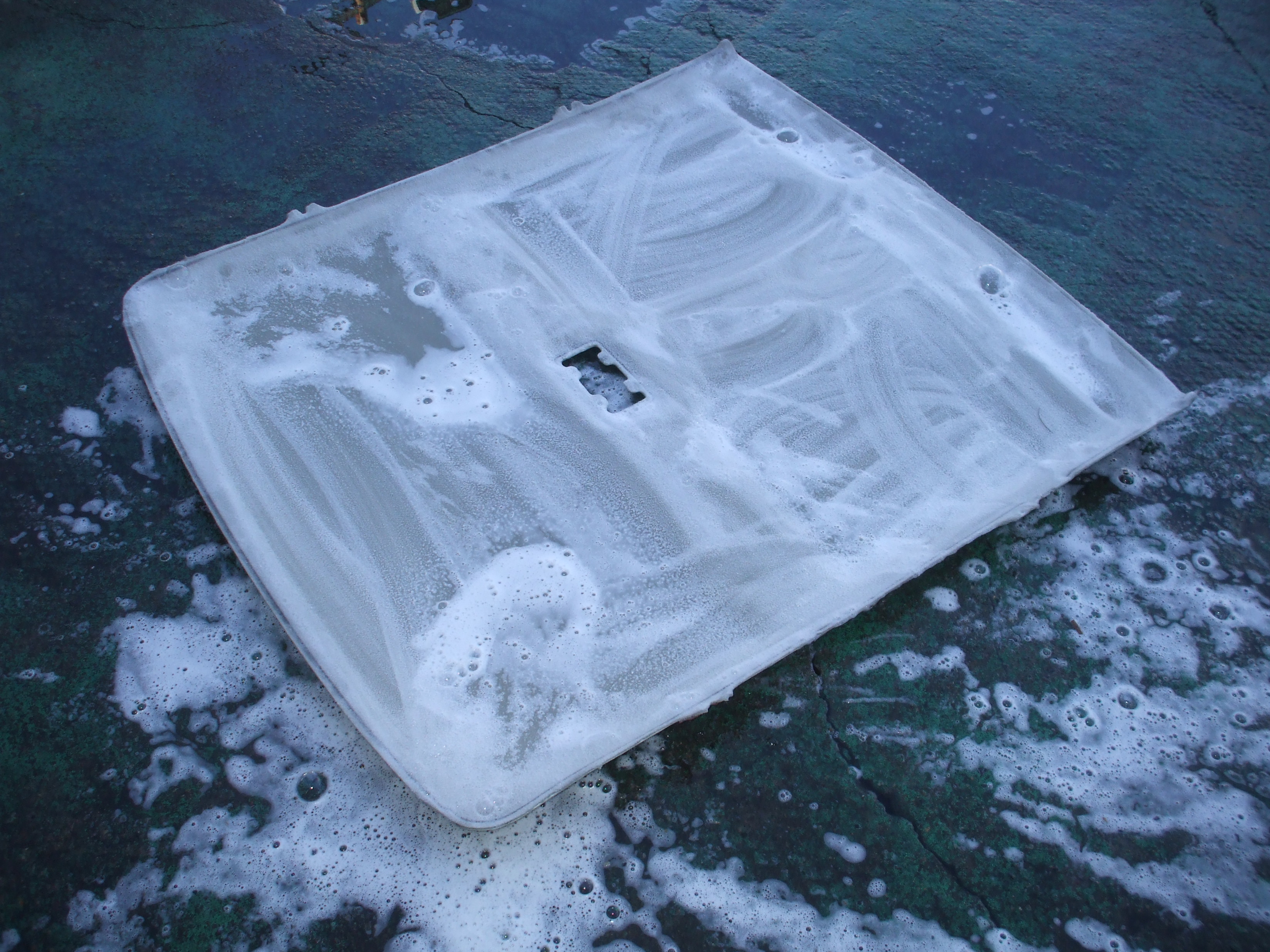 2016年9月5日 (月) | スタッフブログ AE85レビンSE デモ車セミレス 天張りの洗浄 比較的綺麗ですが、臭いは付いておりますので 洗剤で汚れ、臭いを落とします。 やはり茶色くなりました。しばらく置いた後、 洗剤を落とし天日干しにします。 綺麗になったと同時にいやな臭いが落ち 洗剤のいい香りがします! メンバー、燃料、ブレーキ廻りの取り付けも行いました。