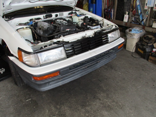 2017年9月10日 (日) | スタッフブログ 県内O様 ご成約AE86トレノ改レビン エアコンのコンプレッサーをリビルトにレシーバーを新品に交換しました。 フロントバンパー、グリルも付いてようやく車になってきました。