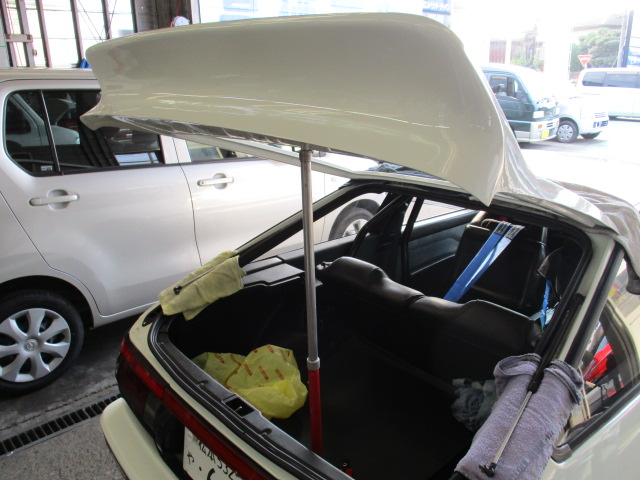 2017年10月12日 (木) | スタッフブログ 栃木県H様 お預かりAE86トレノ こちらもリアゲート一体の物に交換です。 CBYさんのゲートです。 リアガラスは純正を使用しますので取り外しですが・・・・ なかなか外れないのでおかしいと思いウエザーを切って確認すると なんとガラス糊で一面コーキングされておりました。 徹底してるというかここまで必要ないと思いますが 取り外しに時間がかかってしまいました。 無事ガラスを取り外して明日取り付けます。