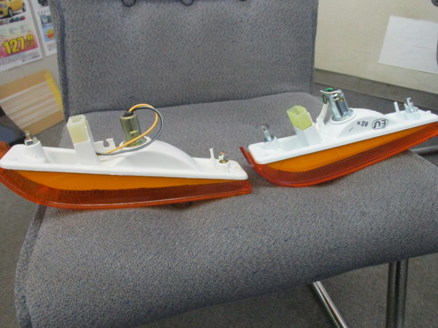 2017年11月30日 (木) | オーナーズクラブNEWS, スタッフブログ, レストア情報 社外後期レビン用Fバンパーウインカー コーリンさんから出たレビン後期用のフロントバンパーウインカーです。 向かって左が社外品、右が純正品です。 まぁ~クオリティーはそれなりですが、左右で7,600円(税抜)は ちょっと魅力ではあります。イベントや大事な時は純正品で 普段は社外品もありかなぁ~ 近くで見なければわかりませんからね!