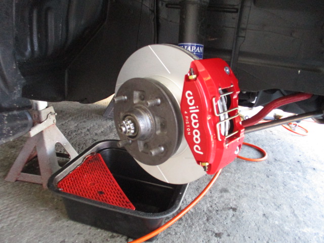 2018年4月26日 (木) | スタッフブログ 県内K様 お預かりAE86トレノ フロントのブレーキの交換です。 取付ステーを指示トルクにて締め取り付け。 純正ハブに大径ローターを こちらも指示トルクにて締め付けをし ハブを取り付けます。 ハブの締め付けを調整してキャリパーを取り付けました。 ブレーキホース、ハブキャップも取り付けフロントはエア抜きを待つのみです。