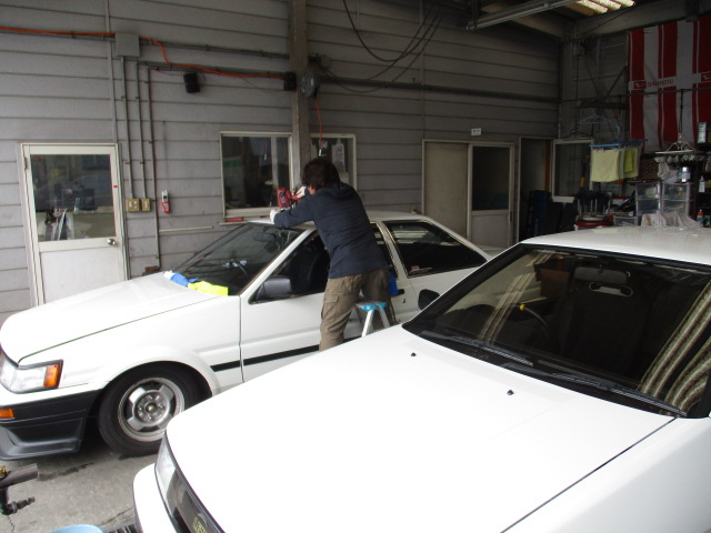 アライメント、予備検査も終わり業者さんによるガラスコート作業に入っております。