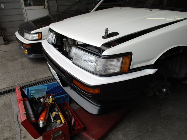 2018年7月5日 (木) | スタッフブログ 県内K様 お預かりAE86レビン ヘッドライトは新品に交換です。 ステーまで付いてくるのはほんとありがたいですね。 ブローバイのホースも今までのを取り外して新たに取り付け インダクションBOXに戻しました。