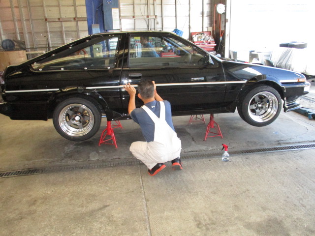 2018年9月28日 (金) | スタッフブログ, レストア情報 AE86トレノ ブラックリミテッド仕様セミレス サイドラインを貼る為、まずは位置出しです。 墨出しして貼り付けです。 非常に重要な作業ですのでより慎重に行います。 テールレンズ、ガスケットも新品を取り付けです。 外装はかなり進みました。 しかしカッコイイ!!