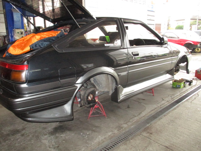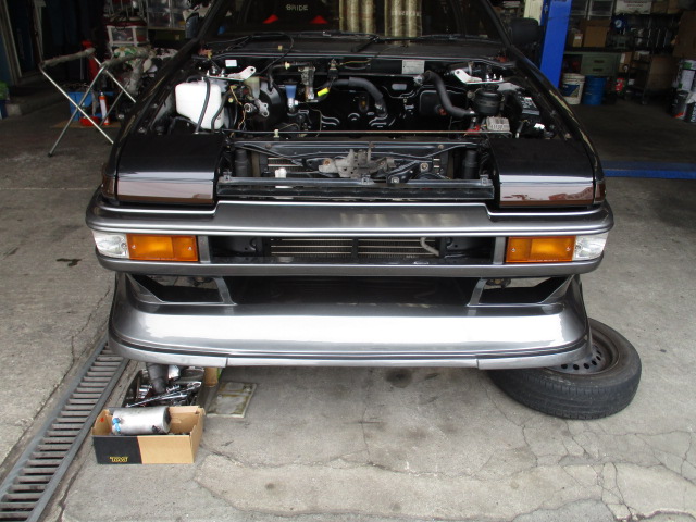 2018年12月7日 (金) | スタッフブログ 千葉県H様 お預かりAE86トレノ テックアートさんのエアロの塗装が上がってきたので取り付けました。 かなり迫力あるのでホイルタイヤがエアロ負けしそうな予感です!