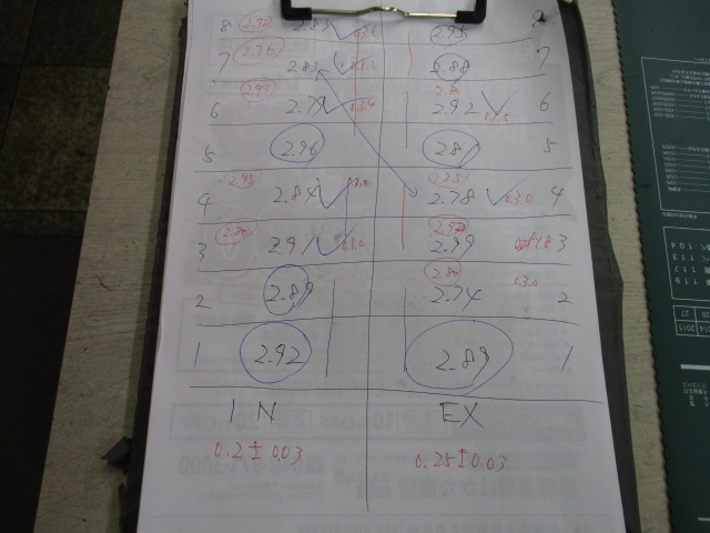 回転させて残りのIN5,6,7,8EXの3,4,7,8をストックのシムで調整しました。