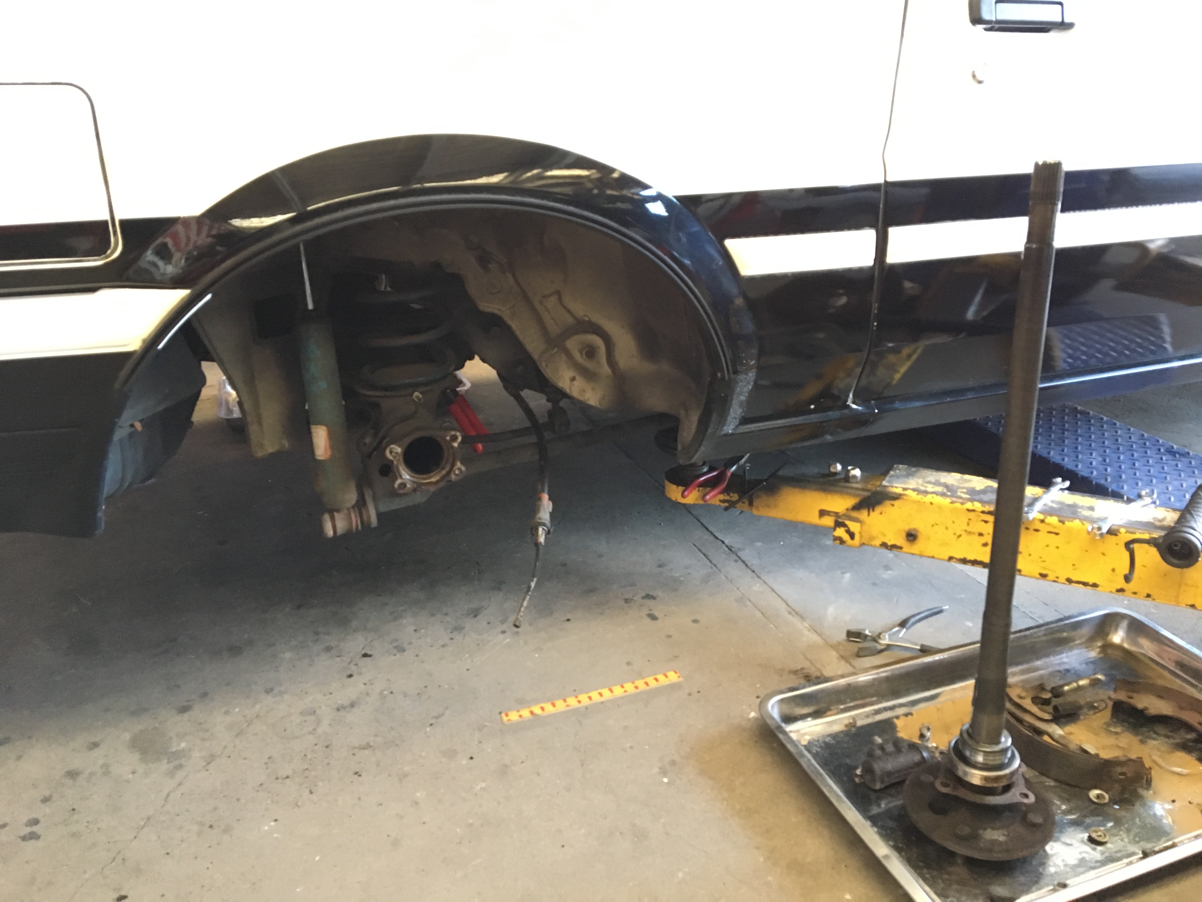 リヤのバックプレートにブレーキフルードがつたって錆が出ていました、ドライブシャフトを外す作業の合間に外して塗装しました。