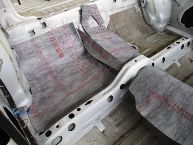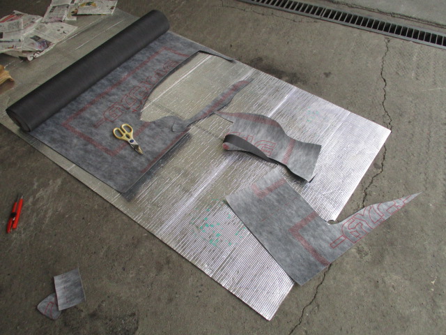 室内を洗浄後、遮音シートを敷き詰めていきます。