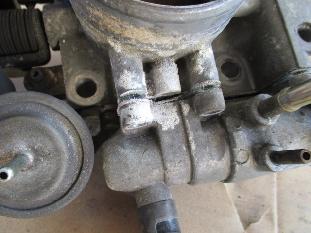 それからスロットルボディに付いているバルブから水漏れの跡があり