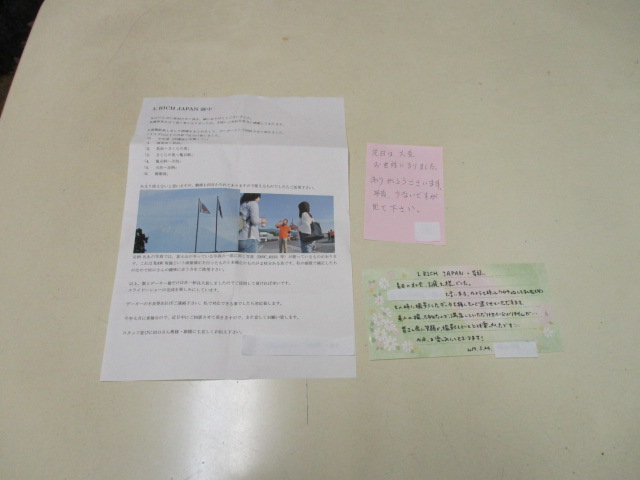 2017年5月25日 (木) | オーナーズクラブNEWS お手紙 画像を送って頂く時、一緒によくお手紙を頂きます。 本当にありがたく拝見しております。 また非常に心温まりいつも感謝の気持ちでいっぱいです。 また次も頑張れます! 手紙というものは短くても活字の中にいろいろな感情がでて 時に勝手に目頭が熱くなる事もあります。 我が家でもお祝い事や記念日等に家族で手紙を渡しますが、 世の中がどう進化しても忘れてはいけない、また残したい ものの一つだと思います。 意識的でなく自然に出来ることが素晴らしいと思います。 L会実行委員長 田口