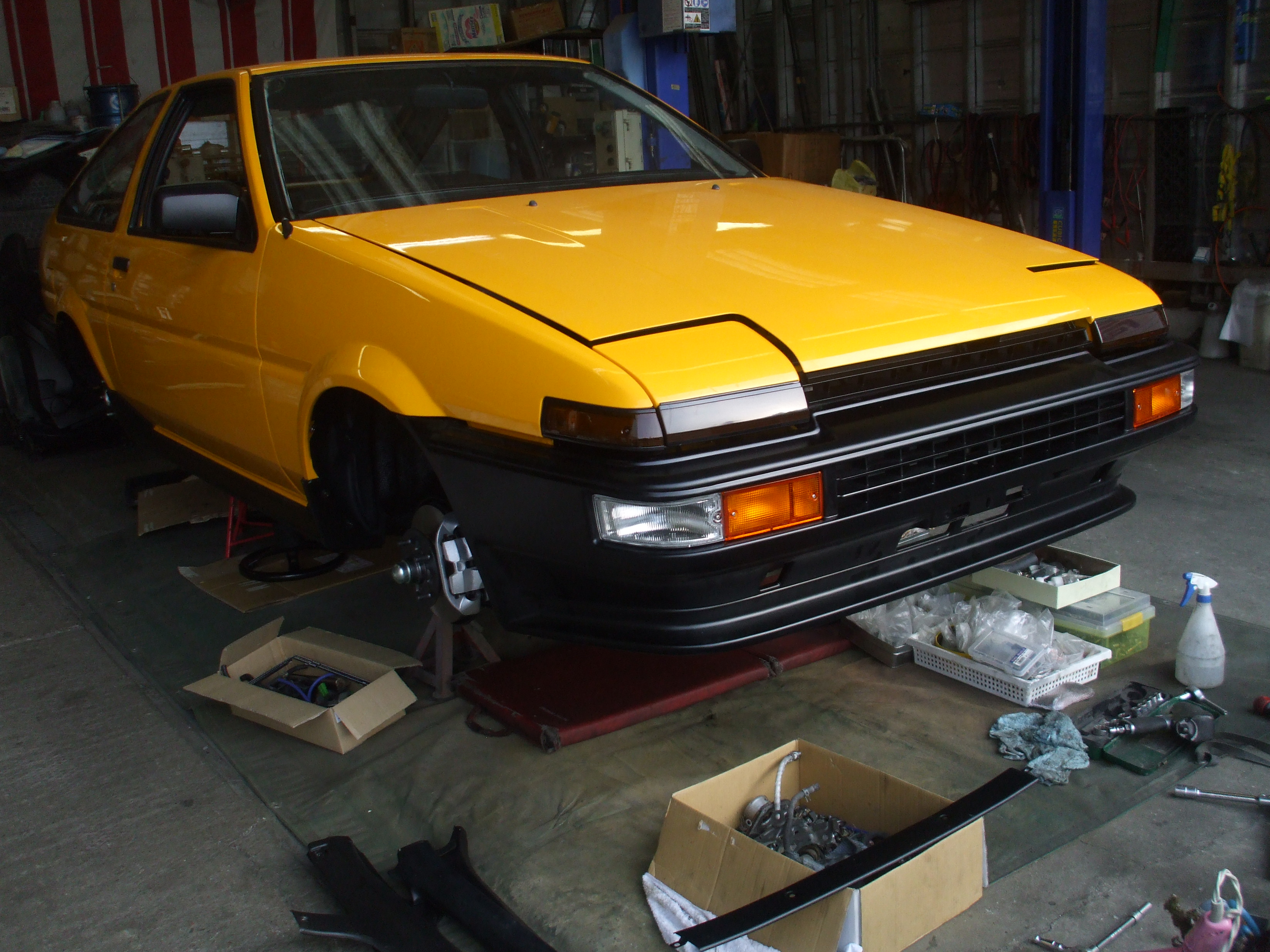 2016年3月28日 (月) | レストア情報 AE85トレノ 20バルブ セミレス ウォッシャータンク、クーラントのサブタンクも新品に交換です。 ファンネルも装着しました。 フロントのガーニッシュ、ウインカーレンズも新品を装着します。 コーナーレンズも フロントバンパーに取り付けバンパー装着しました。 車になってきました!! リアガラスのウエザーストリップも新品に交換して装着 最後にリアハッチの内側のパネルも新品に交換して装着して本日終了です。
