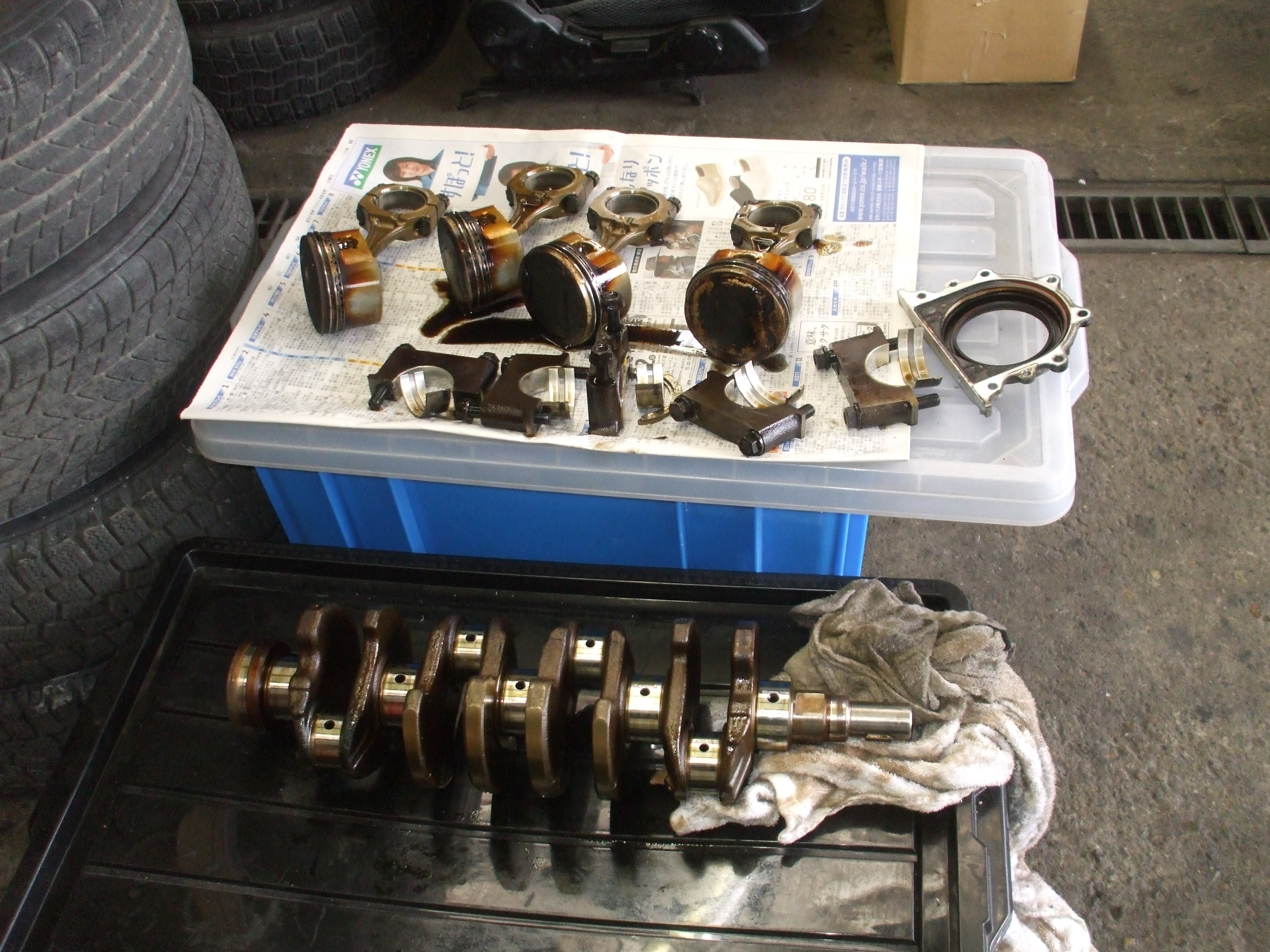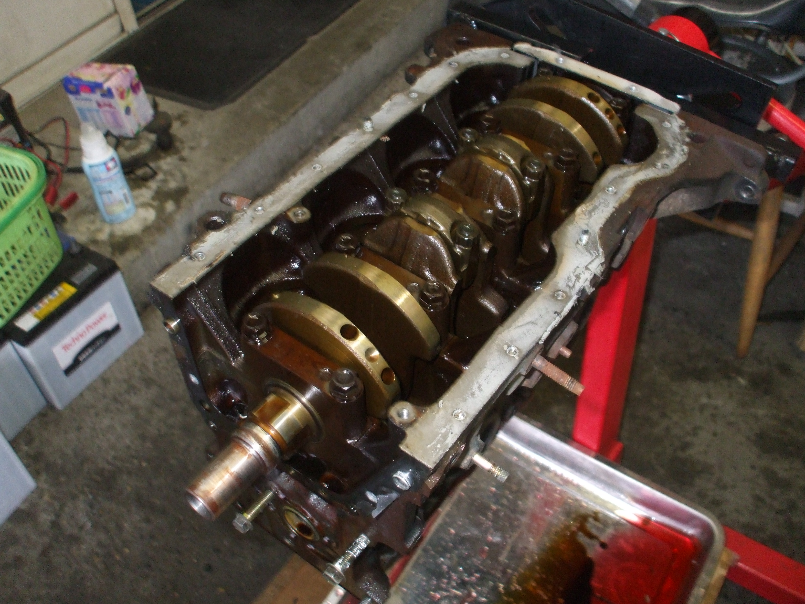 オイルパン、バッフルプレートの取り外し完了です。